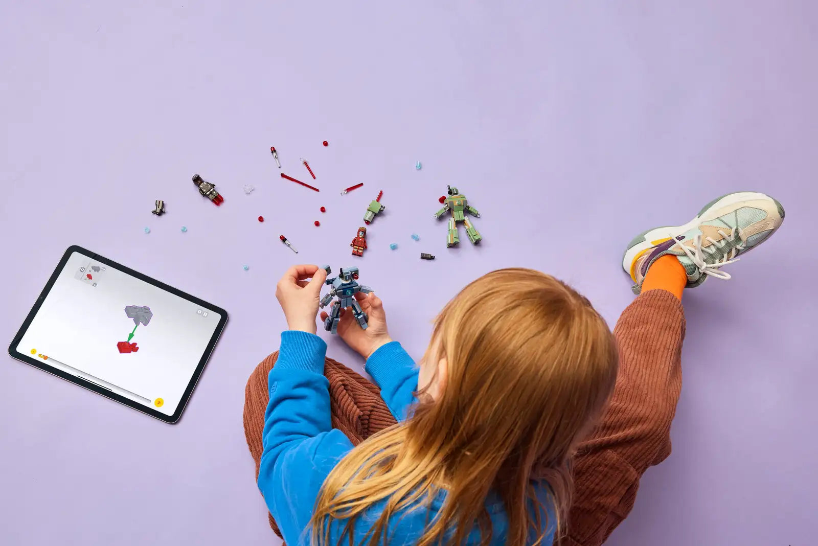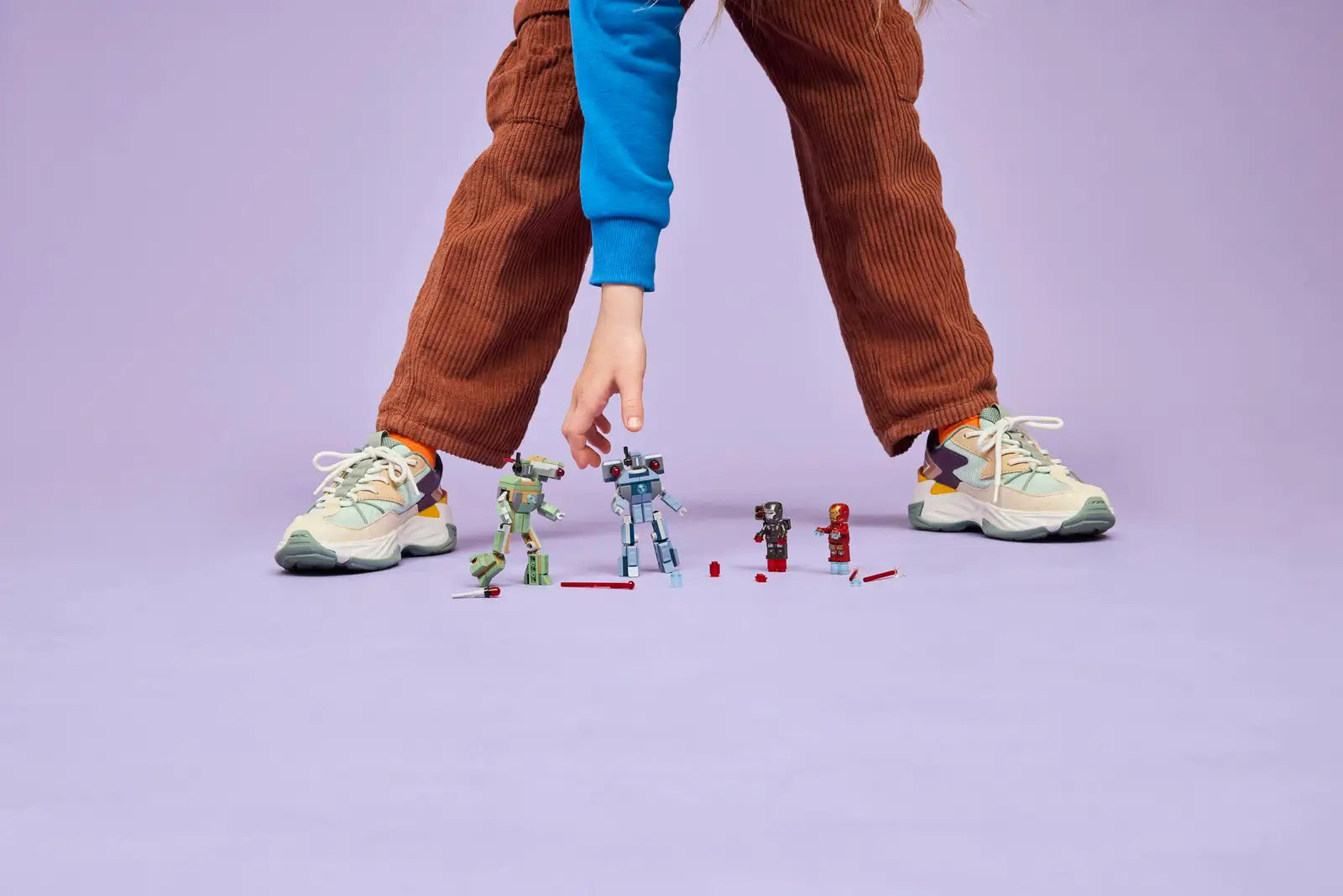 This buildable toy recreates the epic battle scene from Marvel Studios’ Iron Man 2 movie. It comes with Iron Man and War Machine minifigures and 2 buildable Hammer Drones. The Hammer Drones are fully jointed so kids can pose the buildable figures for realistic dynamic play. The green Hammer Drone has a spring shooter on its shoulder. The blue Hammer Drone has a push shooter on each shoulder. War Machine has red hand and feet blasters and a stud shooter on his shoulder. Iron Man has blue hand and feet blasters and can hold laser beam elements. For added digital fun, builders can zoom in, rotate models in 3D and track their progress using the intuitive LEGO Builder app. Contains 204 pieces.